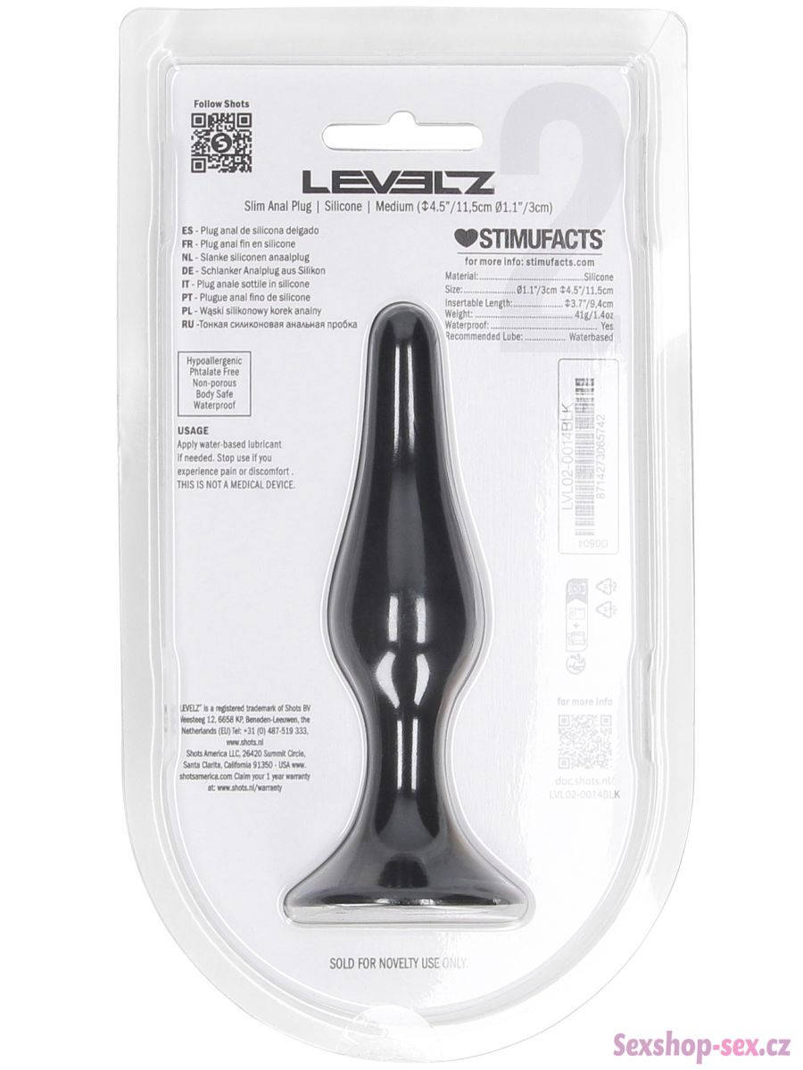 Silikonový anální kolík s přísavkou - vel. M (Levelz)