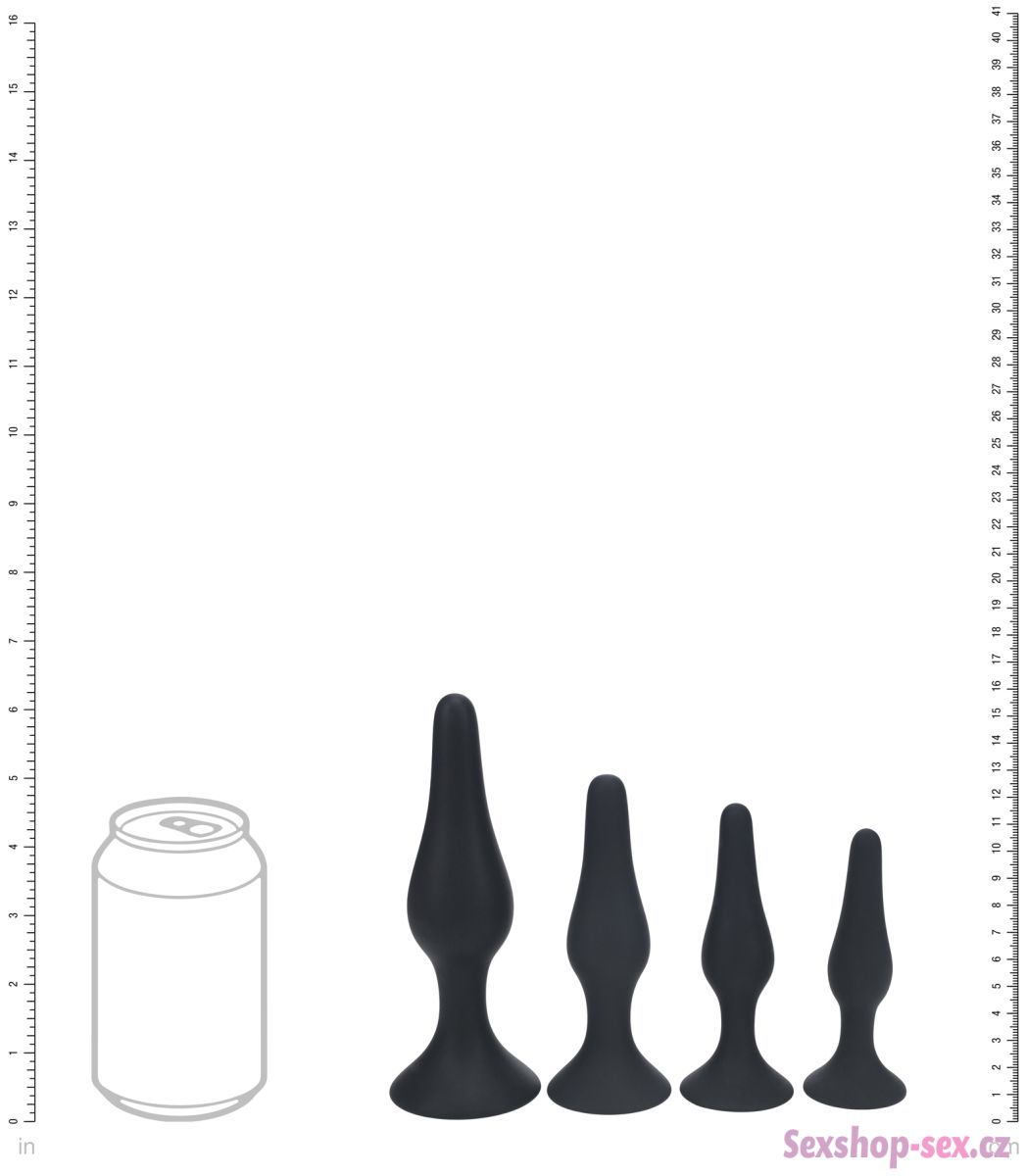 V sadě najdete 4 kolíky o různé velikosti. Mají silnou přísavku a hodí se pro postupné a bezbolestné roztahování zadečku a přípravu na anální sex.