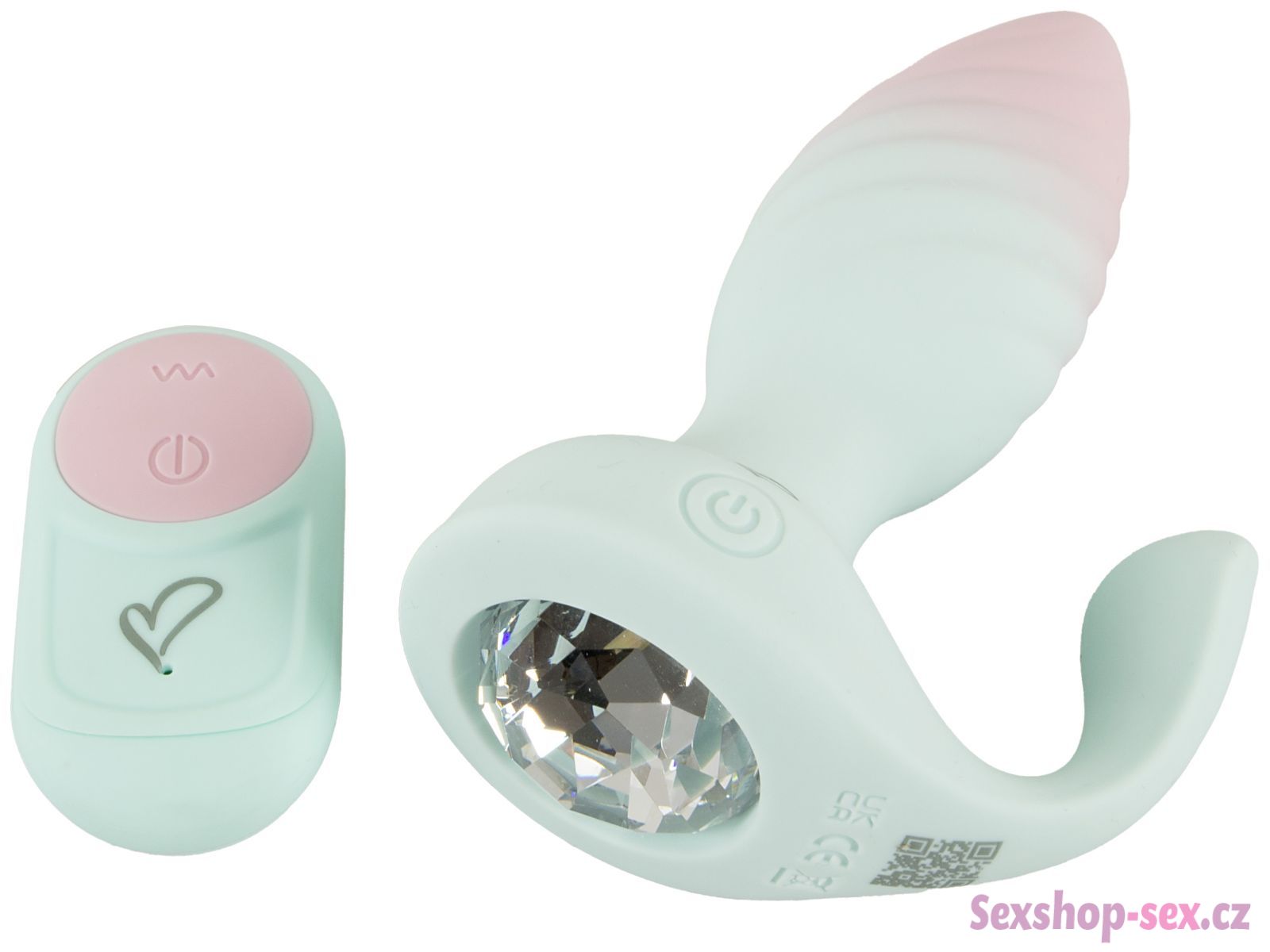 Kolík je ozdobený čirým krystalem a má silné a hluboké vibrace a ohebný výstupek pro vnější stimulaci. Dá se pohodlně ovládat dálkovým ovadačem.