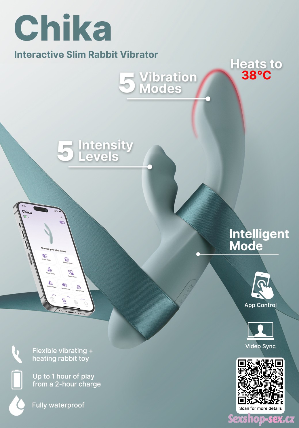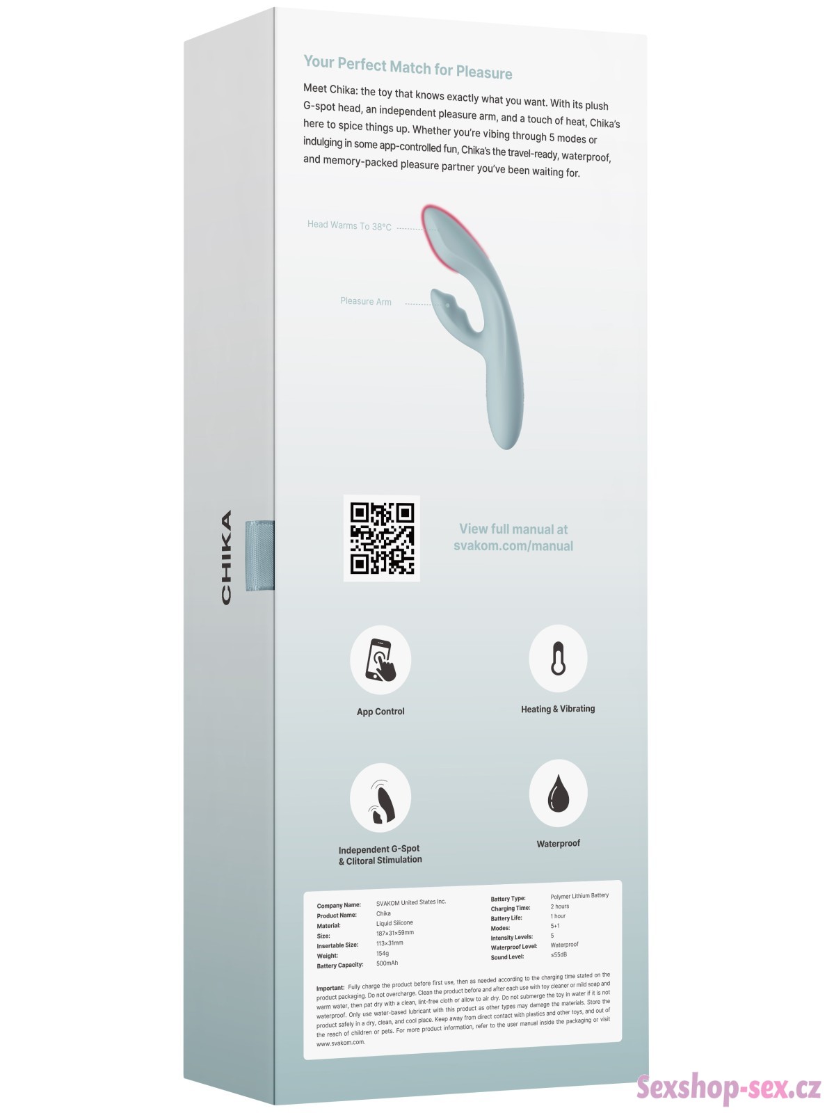 Zažijte pořádně žhavé chvilky a nejeden intenzivní orgasmus. Hřejivý vibrátor s králíčkem Svakom Chika stimuluje bod G a klitoris najednou, zahřeje se až na 38 °C a lze jej ovládat mobilem.