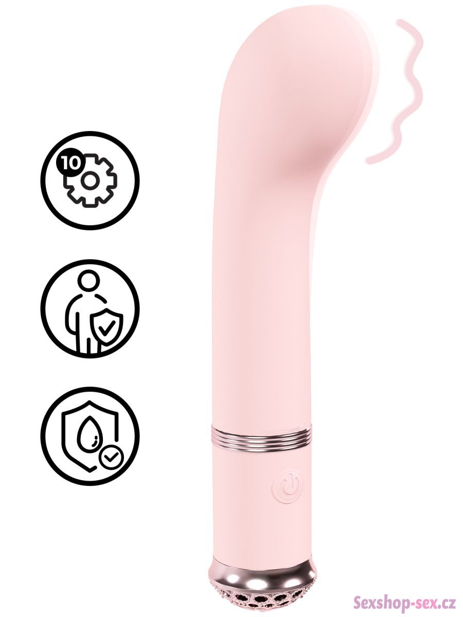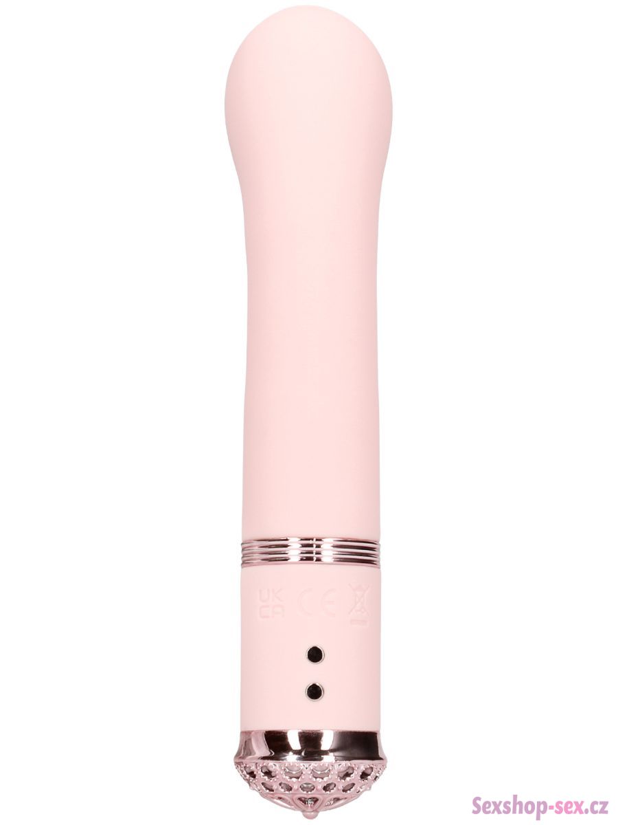 Mini vibrátor vás potěší extra silnými a hlubokými vibracemi. Spodní část je ozdobená šperkem, pod kterým je LED indikace – mění barvu podle zapnutého programu.