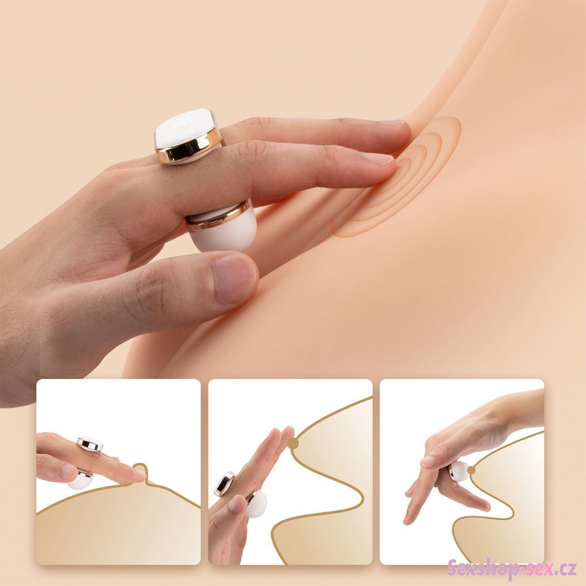 Vibrátor je malý a lehký a dokáže rozvibrovat vaše prsty – unikátní design ve tvaru U zajišťuje bezpečné uchycení mezi prsty, aniž by sklouzával.