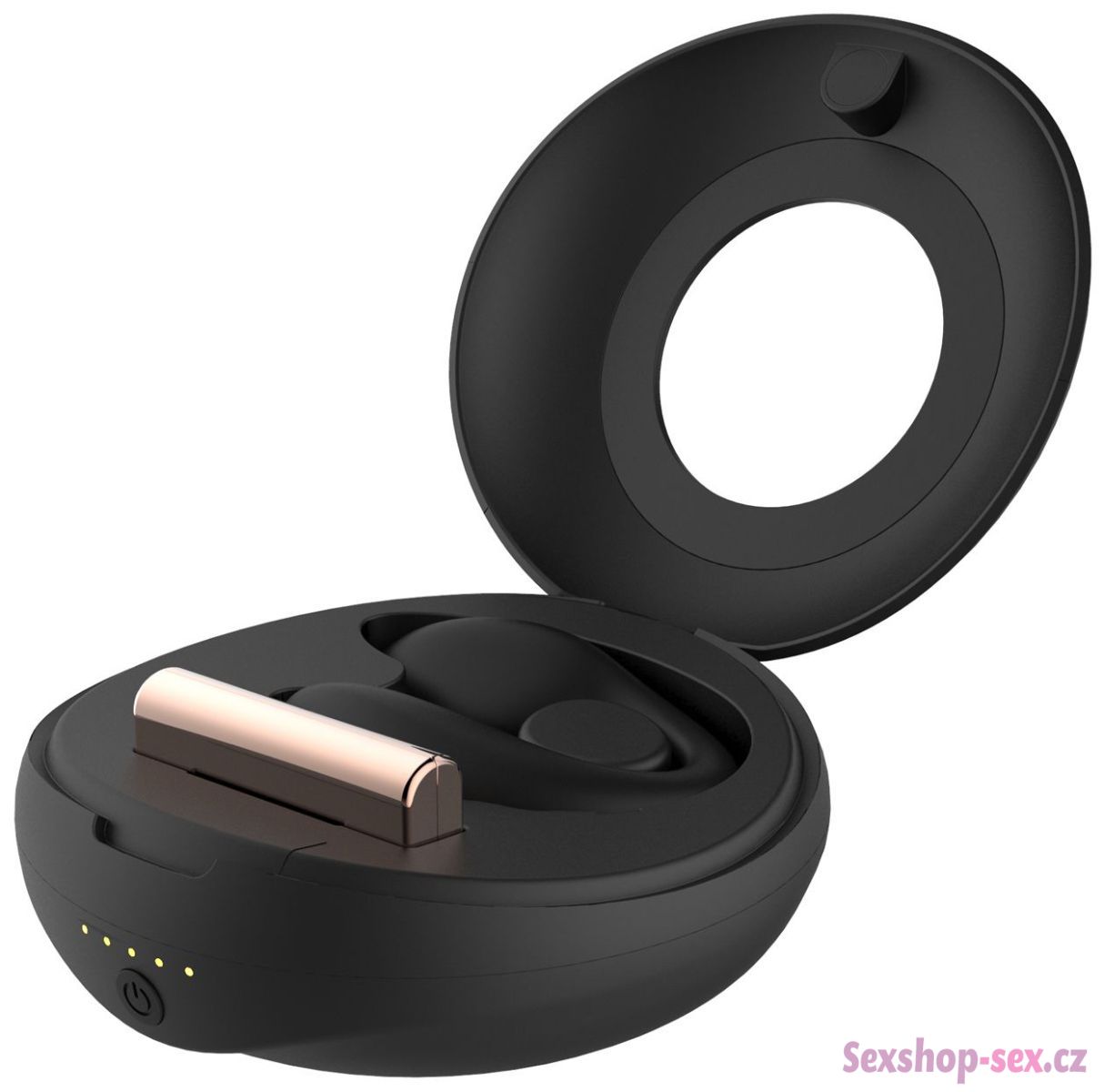 K vibrátoru dostanete praktické pouzdro, které slouží jako dokovací stanice pro vibrátor i ovladač. Pouzdro ochrání vibrátor před prachem i poškozením, a to i během cest. Na vnitřní straně víčka najdete zrcátko.