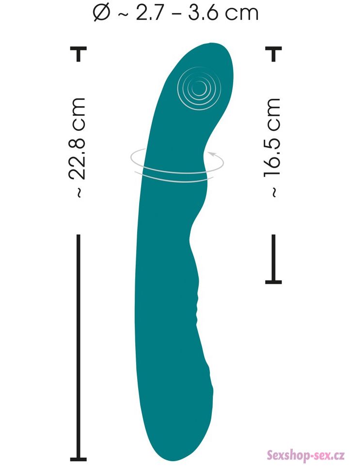 Vibrátor je anatomicky tvarovaný pro přesnou masáž bodu G – potěší ho kombinací rotací a silných a hlubokých vibrací.