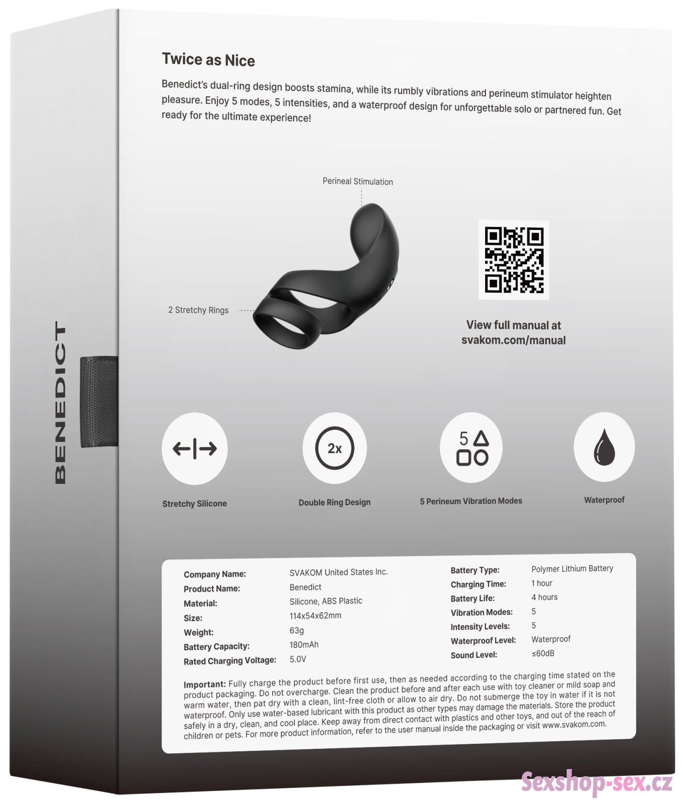 Ozvláštněte si sex či masturbaci. Vibrátor na hráz s kroužkem na penis Benedict od Svakom provibruje hráz silnými vibracemi a navíc vám pomůže k lepší erekci.