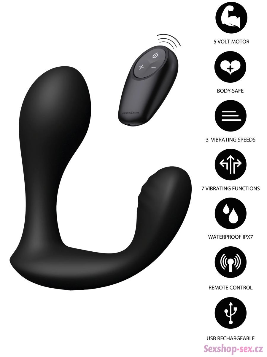 Vibrátor je tvarovaný pro přesnou stimulaci prostaty a hráze. Má extra silné a hluboké vibrace a dá se ovládat i pomocí dálkového ovladače.