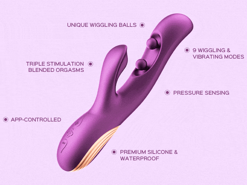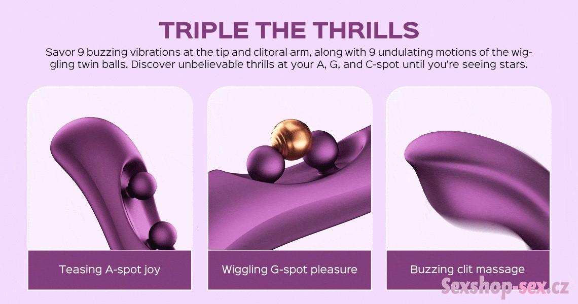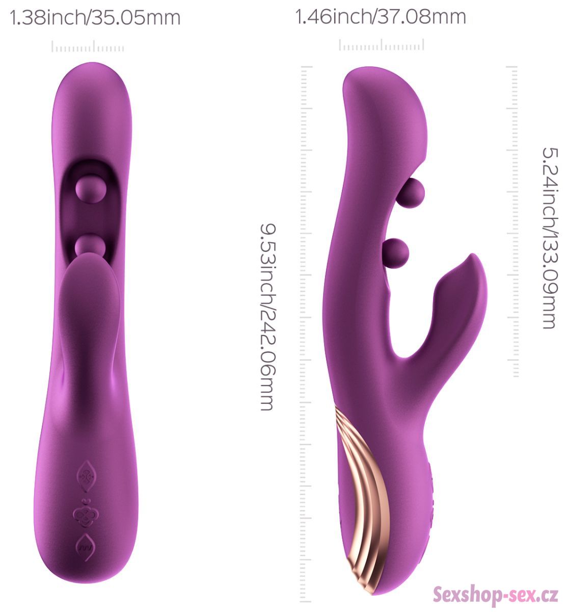 Vibrátor vás potěší trojitou stimulací – bod G si užije vibrace a 2 pohyblivé kuličky, králíček zase provibruje klitoris. Dá se ovládat i mobilem.