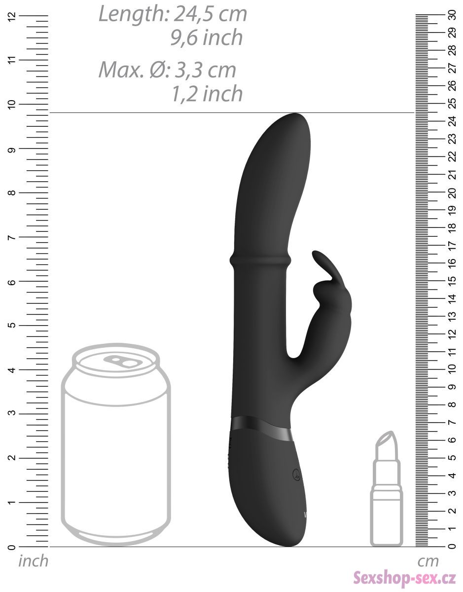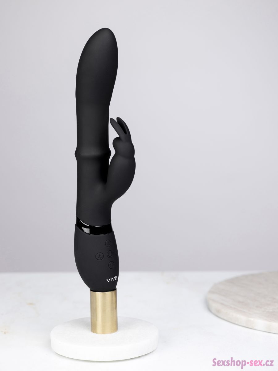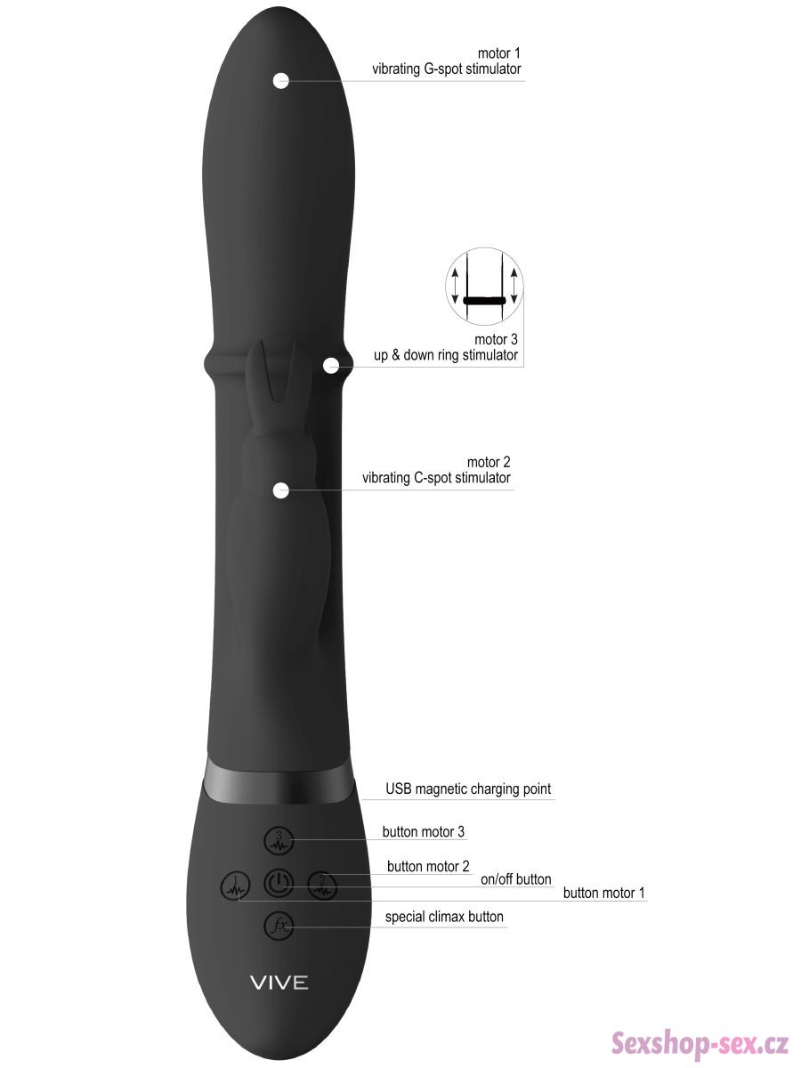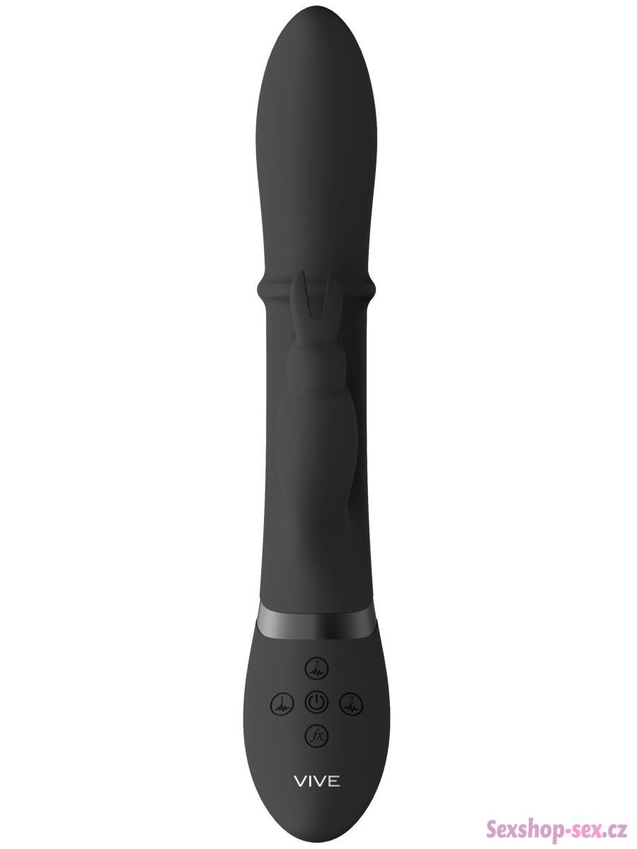 Vibrátor promasíruje bod G a poševní stěny vibracemi a 1 pohyblivým kroužkem. Vibrační králíček pak potěší i klitoris.