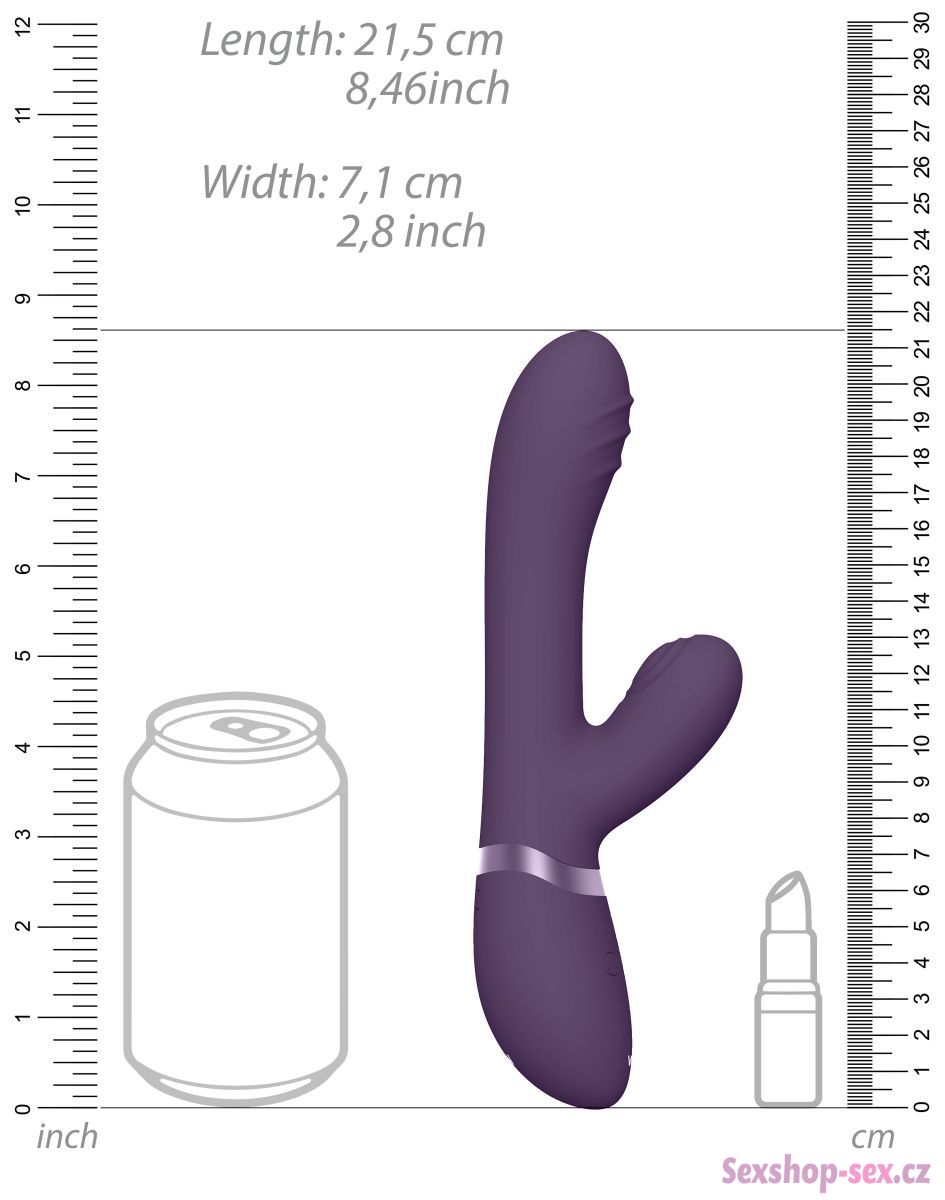 Celkem se můžete těšit na 10 vibračních a 10 pulzačních módů a 10 funkcí pro pohyb špičky. O vibrace, pohyb špičky a pulzace se starají 3 motorky, které ovládáte samostatnými tlačítky. Stimulaci si tak snadno přizpůsobíte momentální náladě a chuti.